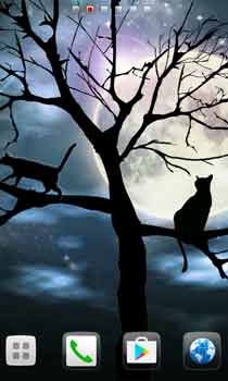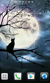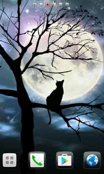 憂鬱な猫は今日も満月を独り占め。ファンタジックなシルエットライブ壁紙☆