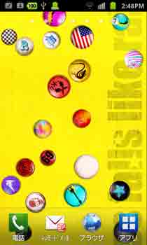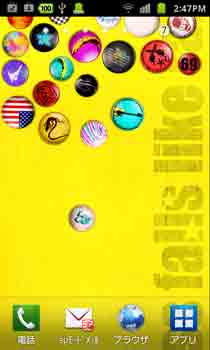 ■携帯の傾きと缶バッチをタップすることで、缶バッチが飛び回ります。