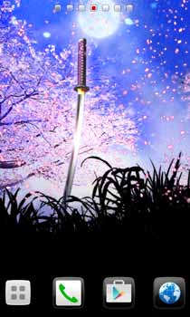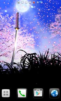 月明かりに妖しく煌めく日本刀。舞い散る桜の儚さとのコラボが絶妙!