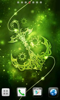 緑色に輝く大地のエレメント。ダイナミックに描かれた錨と太陽を模した向日葵の花