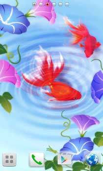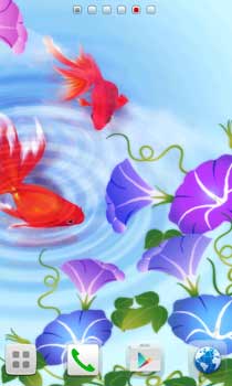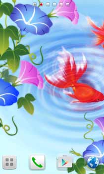【アップデート】水面に映る青い空を優雅に泳ぐ金魚。朝顔との相性バッチリのライブ壁紙☆