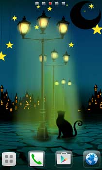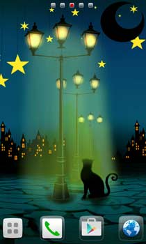 夜を照らす光を見上げるのら猫。ちょっぴり寂しげな黒猫壁紙☆★☆