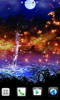降り注ぐ月光は世界を妖しく輝かせる。紅葉と日本刀の和風ライブ壁紙☆