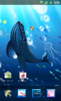 海中を自由に泳ぐ大きなクジラ。青色のグラデーションが涼しげなきせかえです♪