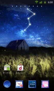 金に色づく野原から見上げる夜空にはカシオペア座。秋の天体観測デザイン☆