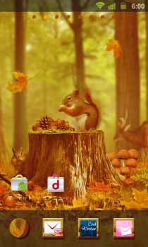 切り株にはどんぐり集めが得意なリスの姿が。色付く森のナチュラルデザイン♪