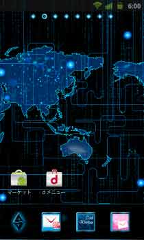 青く輝く大陸と電子の光。世界地図のサイバーきせかえ登場。