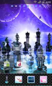 鮮やかに輝く宇宙に浮かぶチェス盤。空想の中の勝負の勝敗は?
