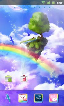 空に浮かぶ島からは美しい虹が…。蒼空に鮮やかな色彩のファンタジー世界☆