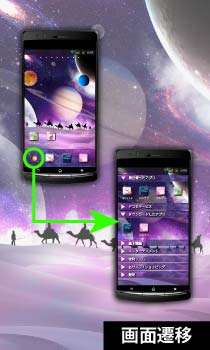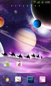 星の砂漠を行く旅人たち。空には宇宙が広がる不思議な世界。
