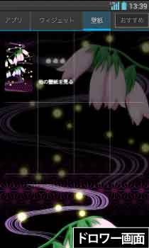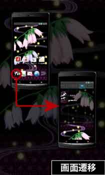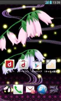 釣鐘のように垂れ下がる蛍袋の花。煌々と光る蛍が美しい和風幻想デザイン♪