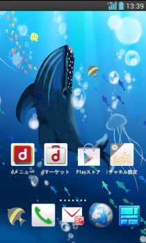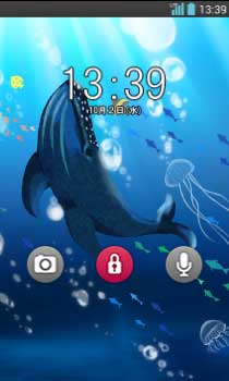 海中を自由に泳ぐ大きなクジラ。青色のグラデーションが涼しげなきせかえです♪