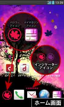 乱れ舞うカラフルな楓の葉。紫に染まる空が神秘的なアートデザイン☆