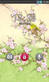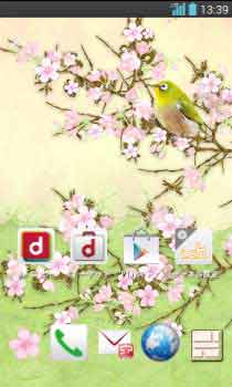 桜に止まる若草色のめじろ。さえずりが聞こえそうな和柄アート♪