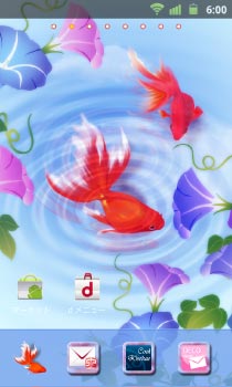 水面に映る青い空を優雅に泳ぐ金魚。朝顔との相性バッチリのきせかえ☆