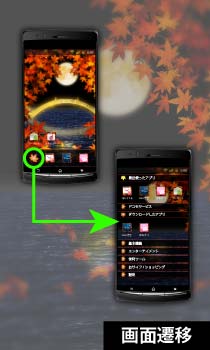 ■もみじがひらひらと舞い落ちてきます。 ■タップすると、もみじが舞います。
