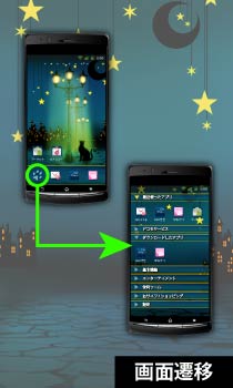 ■星がゆらゆら揺れます。 ■星をタップするとバウンドして大きくなります。 ■街の明かりが点滅します。 ■月をダブルタップすると設定画面が開きます。