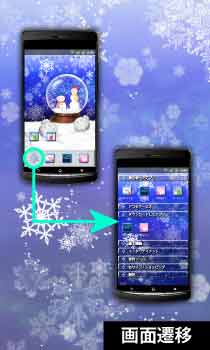 ■雪がふわふわと降ります。 ■スノードームをタップすると中の雪が激しく舞います。